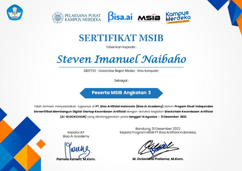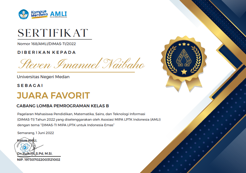 Computer Science graduate from Universitas Negeri Medan with experience in Machine Learning, Big Data, Design, and Web Development.